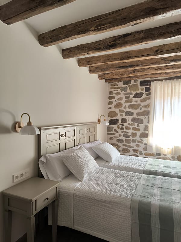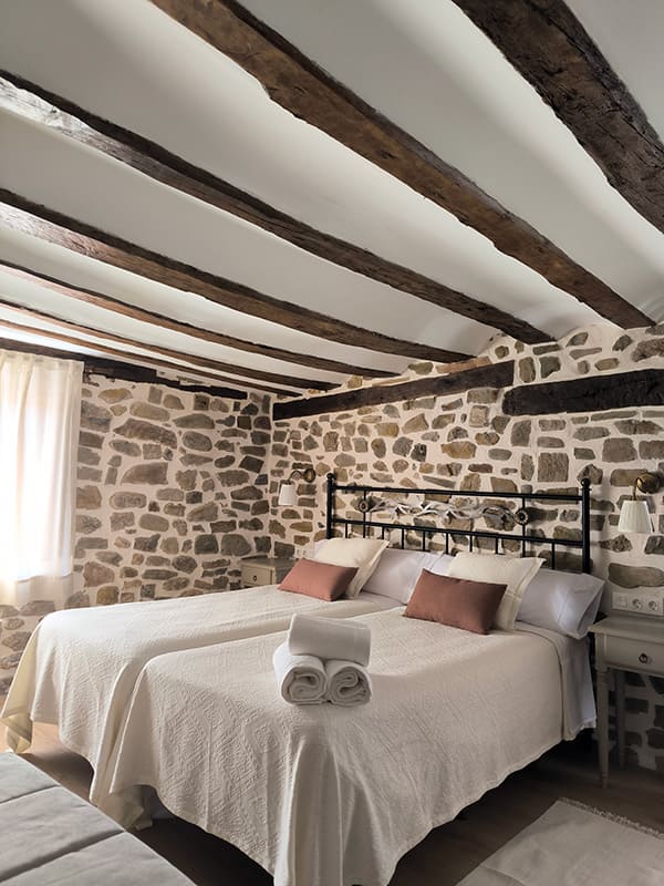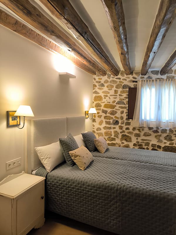 Todas nuestras habitaciones combinan vigas de madera vista con textiles cálidos,